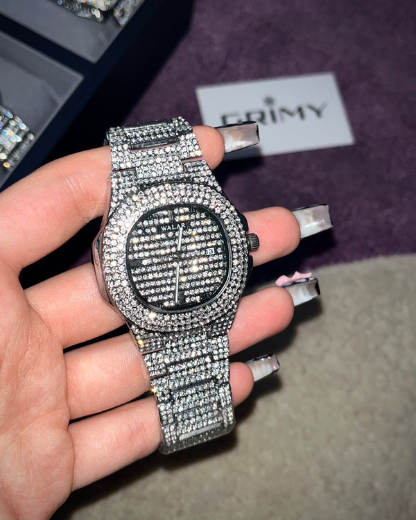 ساعت نگینی walar: جنس الیاژ استیل/بدون جنسیت/طول ۲۲ سانت(قابل تغییر)